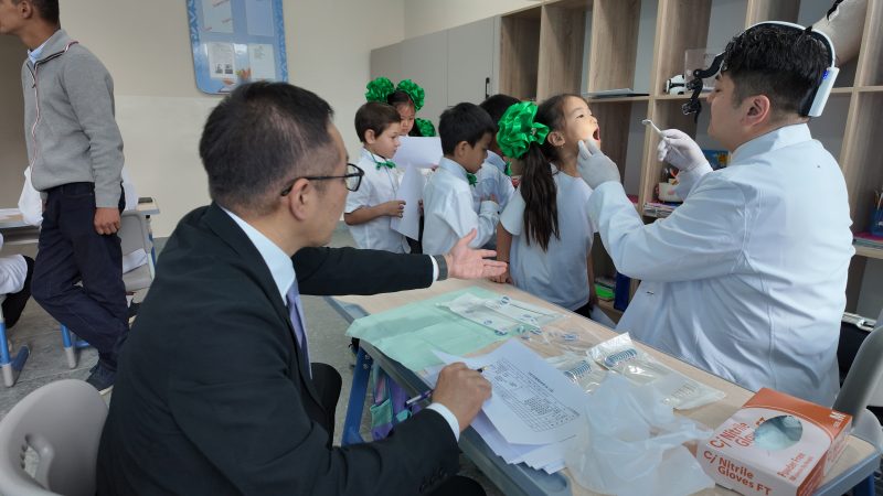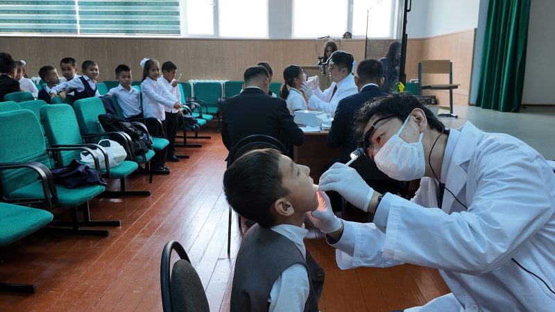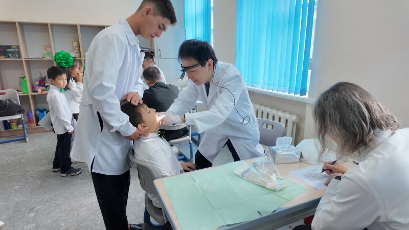 以上4名様の協力により、2025年9月20日ビシュケク市内の小学校で 約200名の児童の歯科検診 を実施しました。